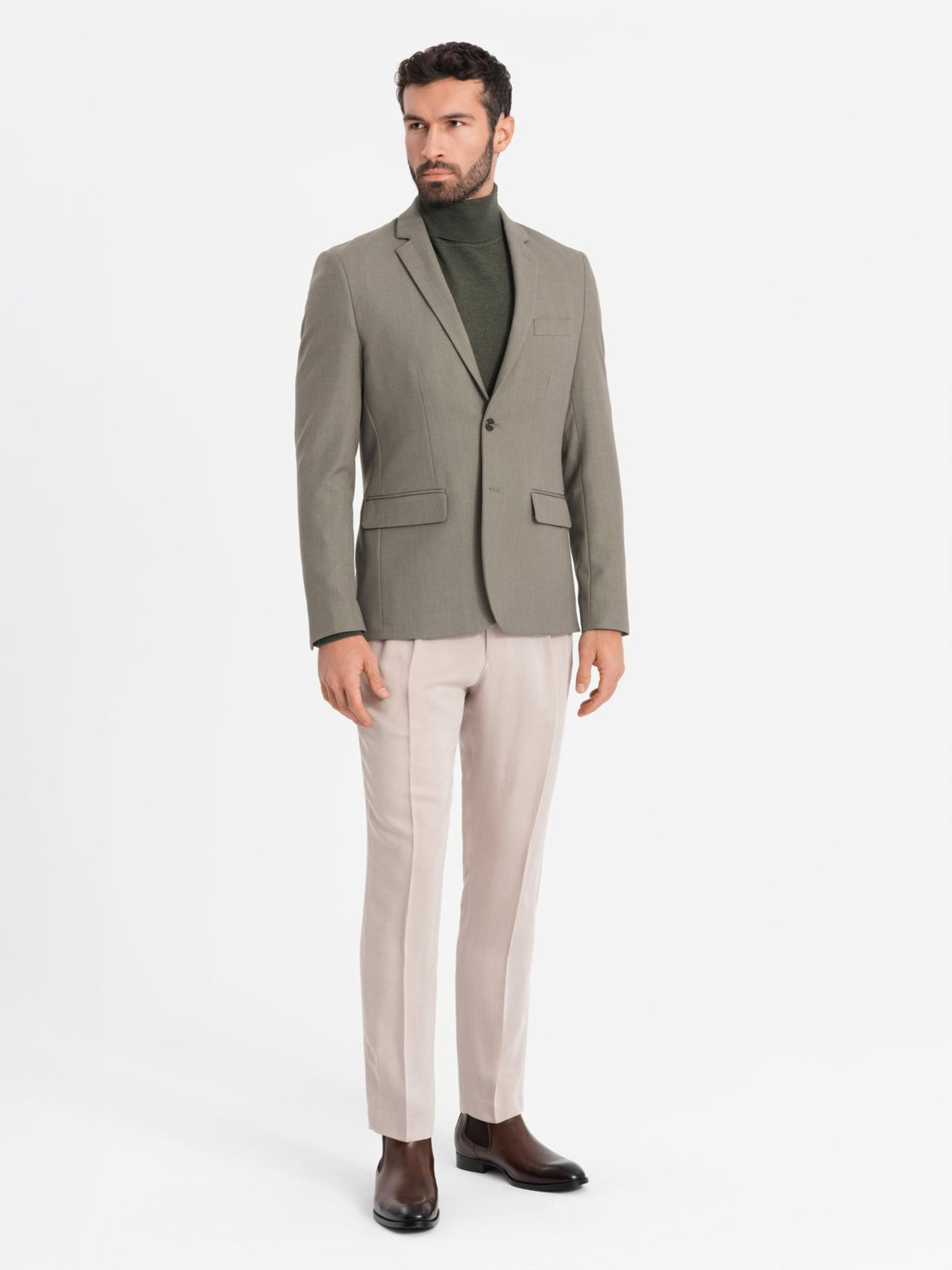 Blazer elegante da uomo in misto lana Khaki Ombre Clothing