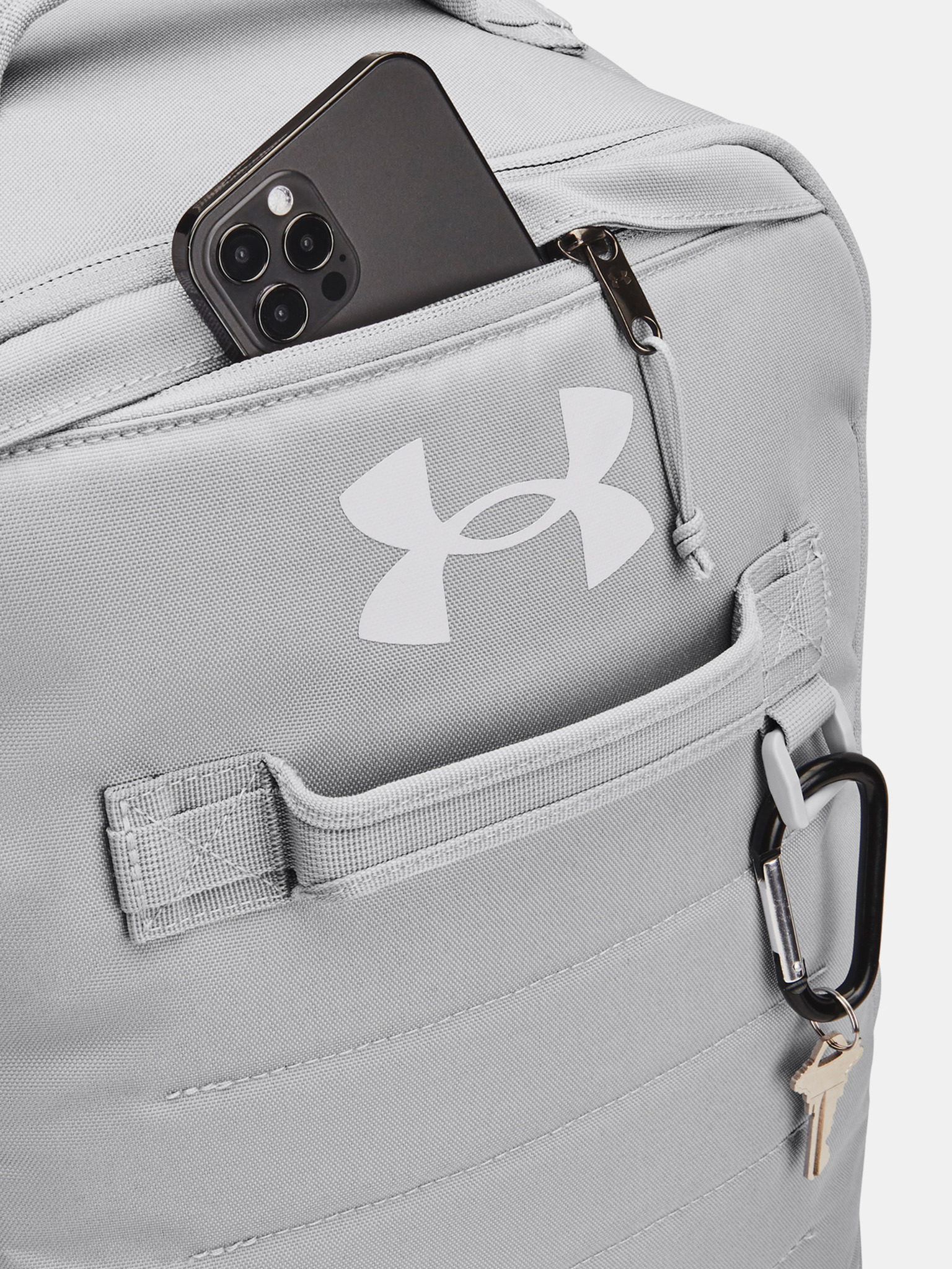 - La UA Strap Clip regolabile e rimovibile sulla spalla impedisce alla borsa di cadere durante il trasporto