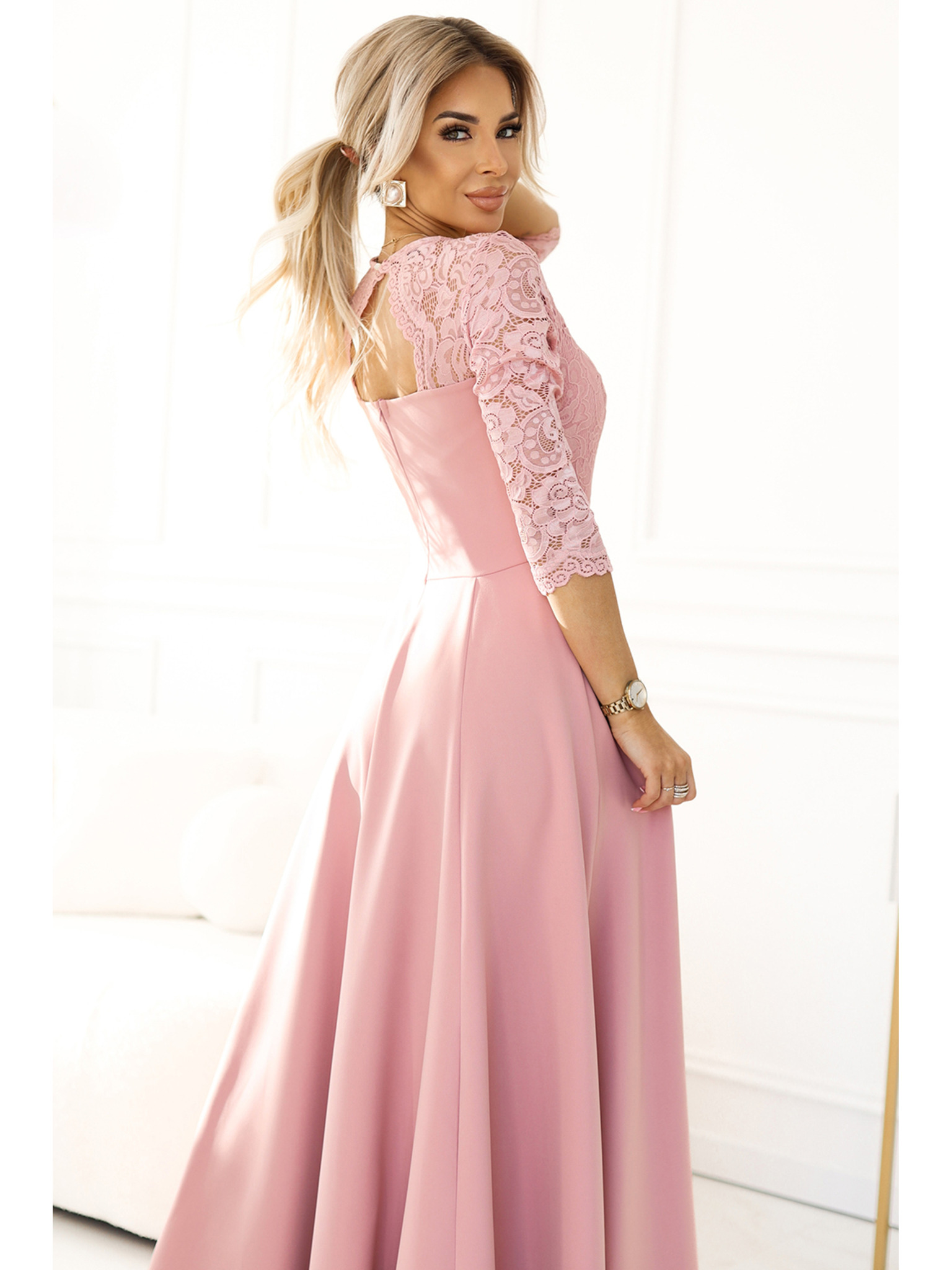 Eleganti abiti lunghi in pizzo con scollatura Numoco